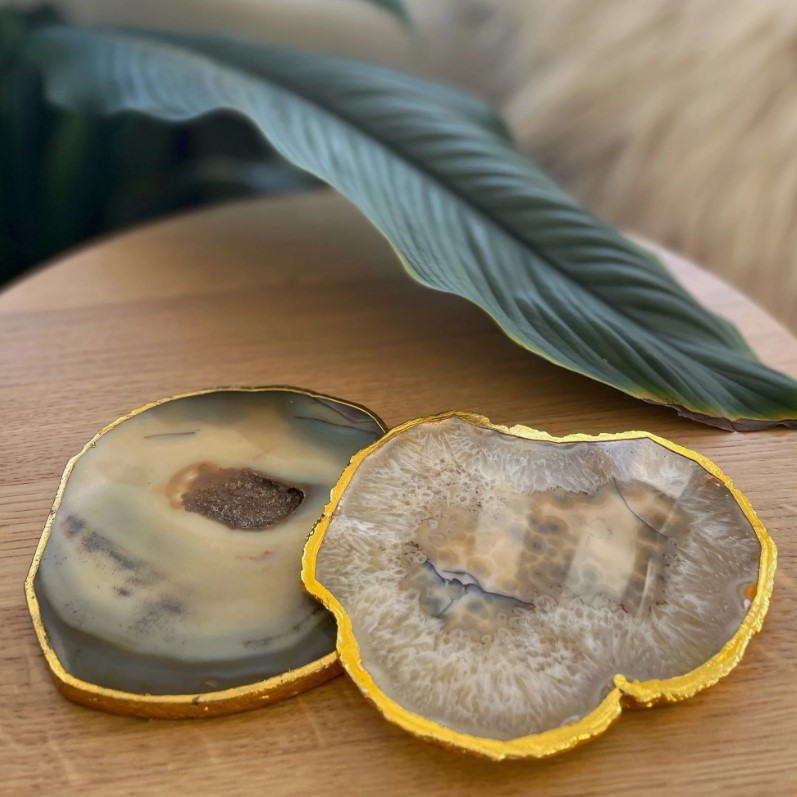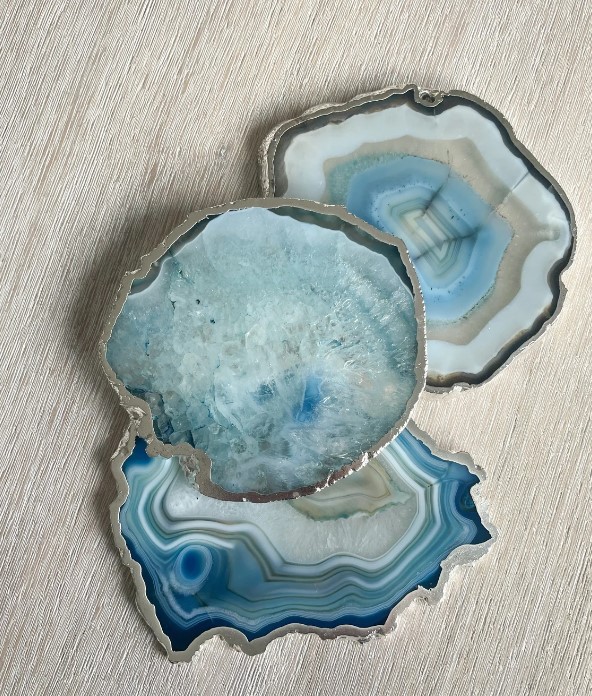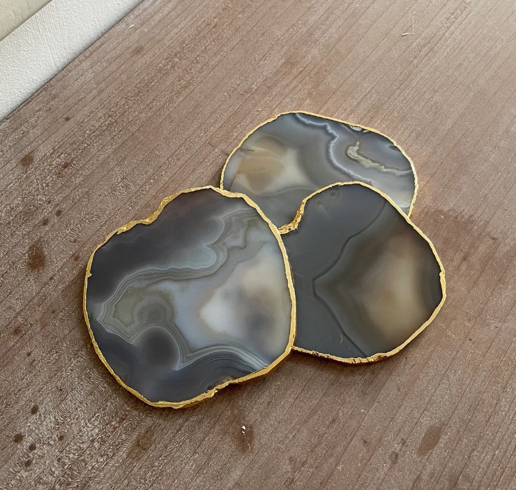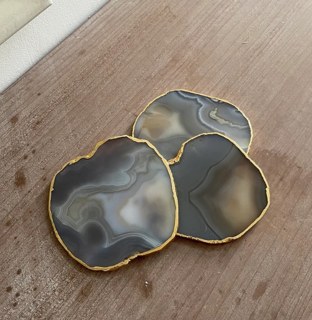 Finally, artisans clean and prepare the agate coasters for finishing touches. Some designs receive gold or silver edge detailing to add a premium decorative appeal. Each coaster maintains its natural look, which ensures no two pieces appear exactly the same.