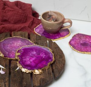 Overall, agate coasters offer excellent heat resistance and moisture protection. People use them for hot beverages, cold drinks, office tables, dining spaces, hotels, and gift collections. Therefore, agate coaster manufacturing delivers durable, elegant, and visually striking products that enhance any interior setting