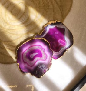 Next, artisans cut the agate stones into precise coaster shapes using advanced cutting tools. They maintain uniform thickness to provide stability and balance during daily use. At the same time, they preserve the natural banding and crystal formations that make each agate coaster unique.
