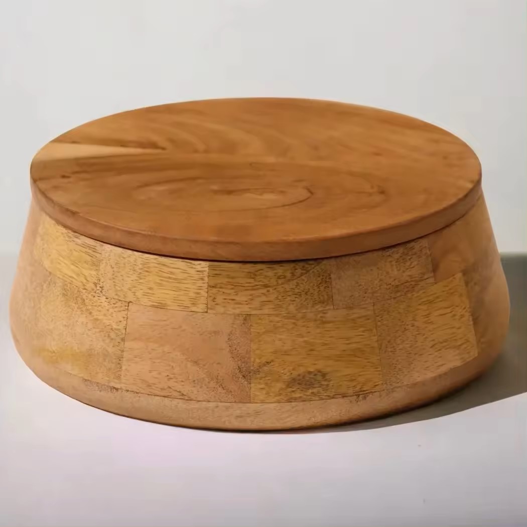 Humran Export selects seasoned mango wood and sheesham wood. Workers cut solid wood with modern machines. Artisans assemble each wooden roti box with strong joints. Teams sand all surfaces for smooth texture. Staff apply food grade finish. Quality inspectors check every wooden chapati box before packing.
